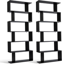 Tangkula 6-Tier Geometric Bookcase, Modern S-Shaped Storage Display Bookshelf for Living Room, Anti-Toppling Device, Home Office Wooden 6 Shelf Open Bookcase (2, Black)