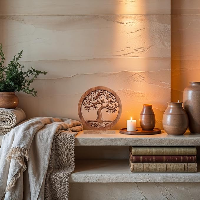 Decozen Solid Wood Tree of Life Sculpture - Home Decor, Living Room, Boho, Shelf, Coffee Table, Centerpiece Table Decorations, Mantle, Dining Table Centerpiece, Bathroom Shelf, Entryway, Farmhouse Sale