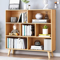 IOTXY Wooden Open Shelf Bookcase - 3-Tier Floor Standing Display Cabinet Rack with Legs, 7 Cubes Bookshelf, Pear Yellow