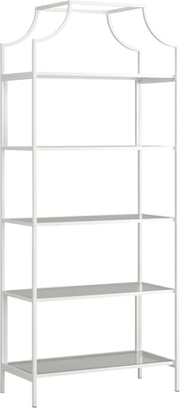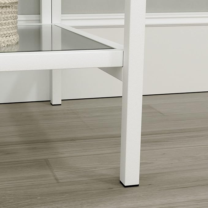 Sauder International Lux Book Shelf 5 Tier Modern Metal Multipurpose Bookcase with Glass Shelving, in White