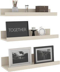 Giftgarden 16 Inch Floating Shelves Wall Mounted, Creamy White Beige Wood-Grain Wooden Ledge Shelf for Bathroom Bedroom Living Room Kitchen Nursery, Set of 3 Different Sizes