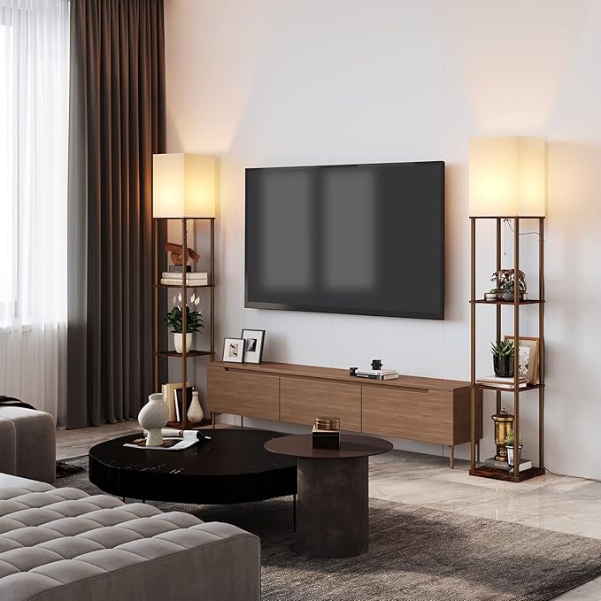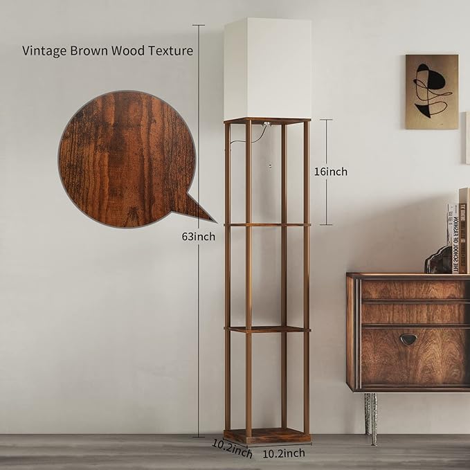 SUNMORY Floor Lamp with Shelves, Modern Square Standing Lamp with 3 Color Temperature Bulb, Corner Display Bookshelf Lamp for Living Room and Bedroom (Rustic Brown) Sale