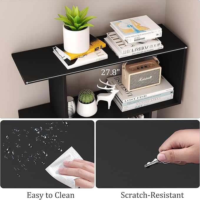 Yusong Bookshelf 5-Tier, Geometric Bookcase S Shaped Book Shelves for Bedroom, Modern Wood Decorative Display Shelf Book Case for Home Office, Black