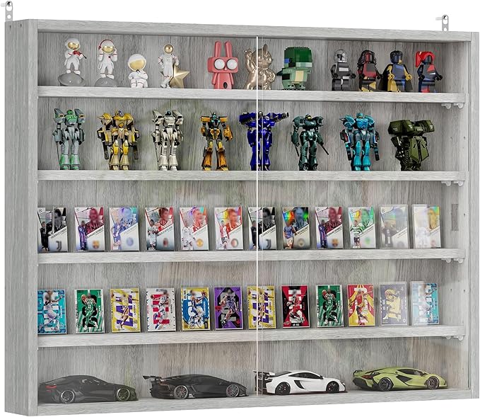 HOMCOM 5-Tier Display Cabinet, Glass Door Cabinet with Adjustable Shelves, Wall-Mounted Display Case for Playroom, Bedroom, Gray