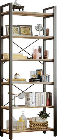 IRONCK Bookshelf 6-Tier Ladder Shelf 110 lbs or Shelf Display Shelf Vintage Industrial Style Bookcase for Home Office, Living Room