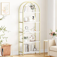 IDEALHOUSE Bookshelf 5 Tier Bookcase Arched Display Racks Tall Standing Bookshelves Metal Frame Modern Storage Rack Shelf Large Wood Book Shelf for Bedroom, Living Room, Home Office, White/Gold Sale