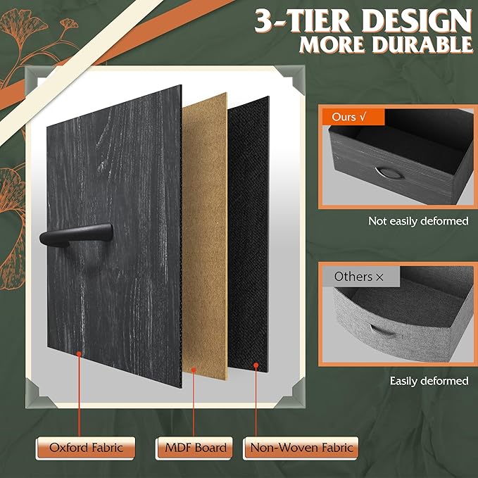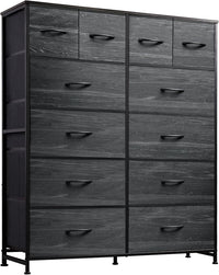 WLIVE Storage Organizer Unit with 12 Fabric Bins, Storage Drawers Organizer with Steel Frame, Tall Storage Tower Organizaton for Living Room, Hallway, Office, Charcoal Black Wood Grain Print Sale
