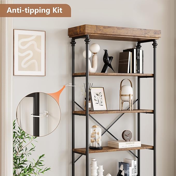 IDEALHOUSE Industrial Bookshelf Wood Bookcase 6 Tier Storage Open Rack Shelf Metal Frame Rustic Tall Standing Bookshelves Large Vintage Display Rack for Bedroom,Living Room and Home Office