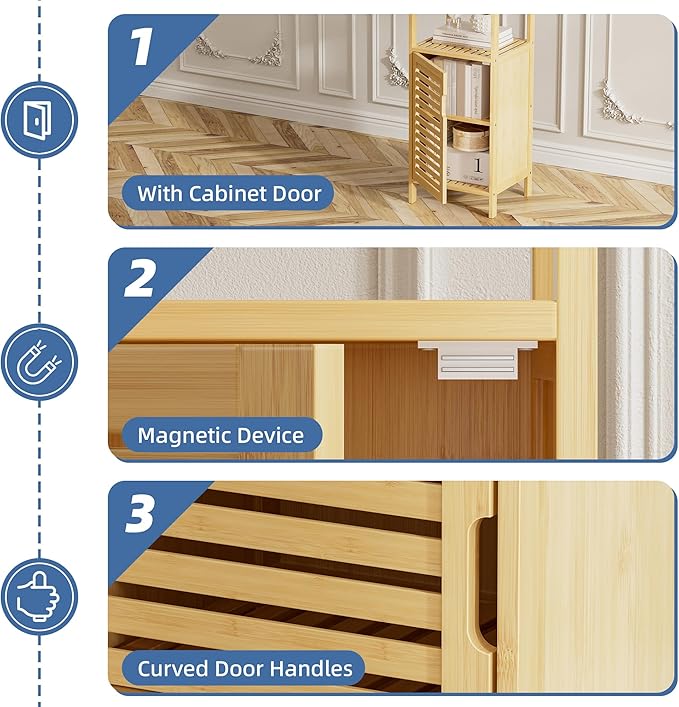 HITNET Bathroom Cabinet Freestanding, Small Bamboo Floor Cabinet, 4 Tier Single Door Sofa Side Table Storage Organizer, Space Saving Kitchen Cupboard, Natural