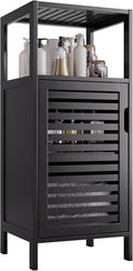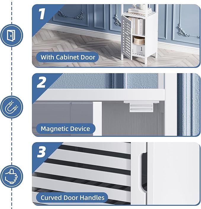 HITNET Bamboo Bathroom Storage Cabinet, 4 Tier Small White Floor Cabinet with Single Door, Free Standing Slim Narrow Storage Organizer for Bedroom Living Room