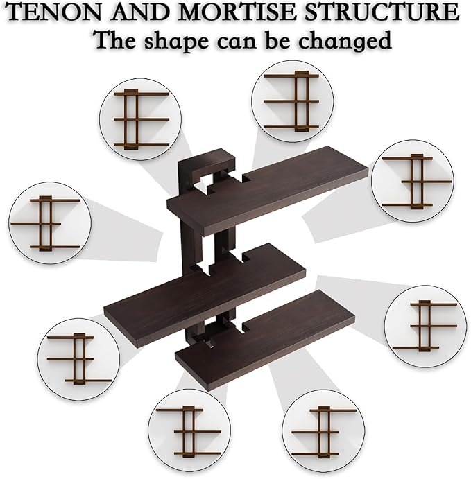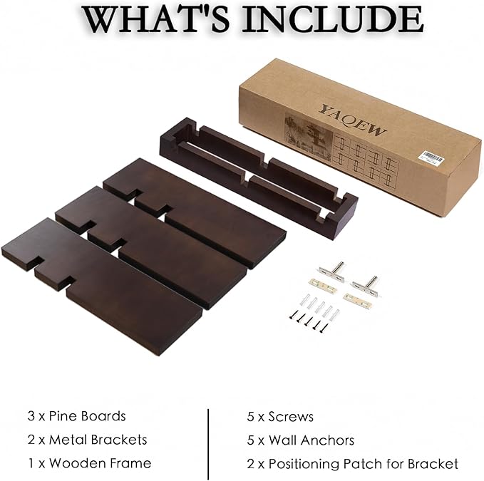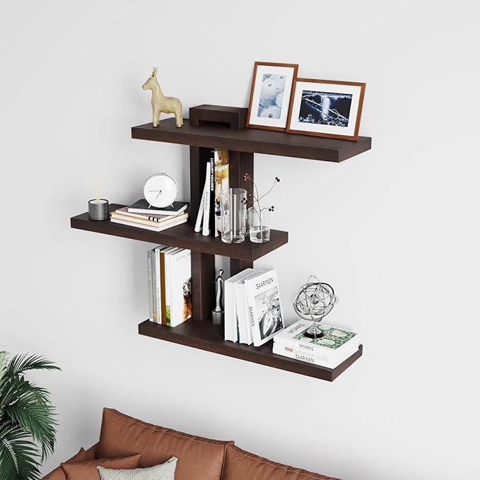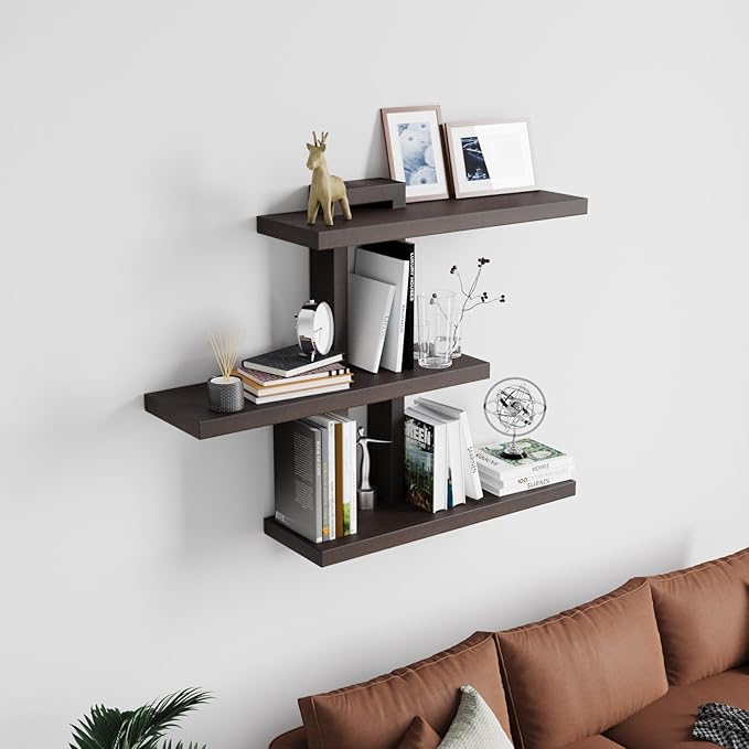 Variable Wood Floating Shelves Set of 3, Wall Cube Shelves 28.35" Max, Wall Shelves for Living Room Bathroom Bedroom - Dark Walnut Color - 28.35" x 23" x 5.9" Max