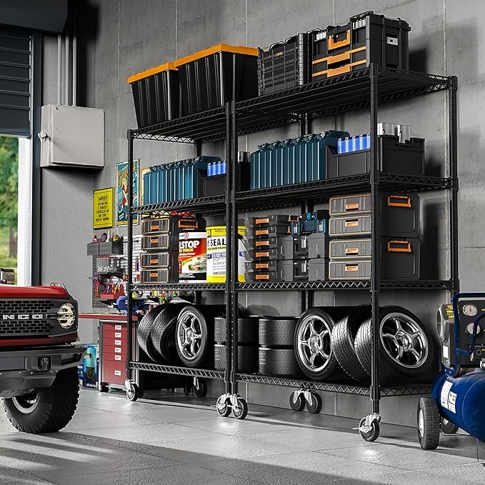 Industrial Metal 4 Tier Shelving for Garage, Pantry, Warehouse, Basement Utility Room, Storage Rack Metal Shelving Unit, Shelf Organizer, Black 23.6" D x 53.2" W x 73.6" H