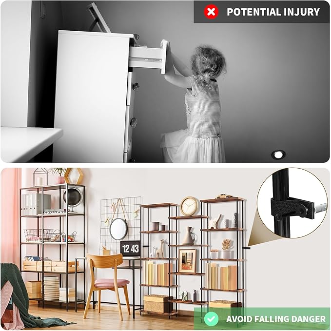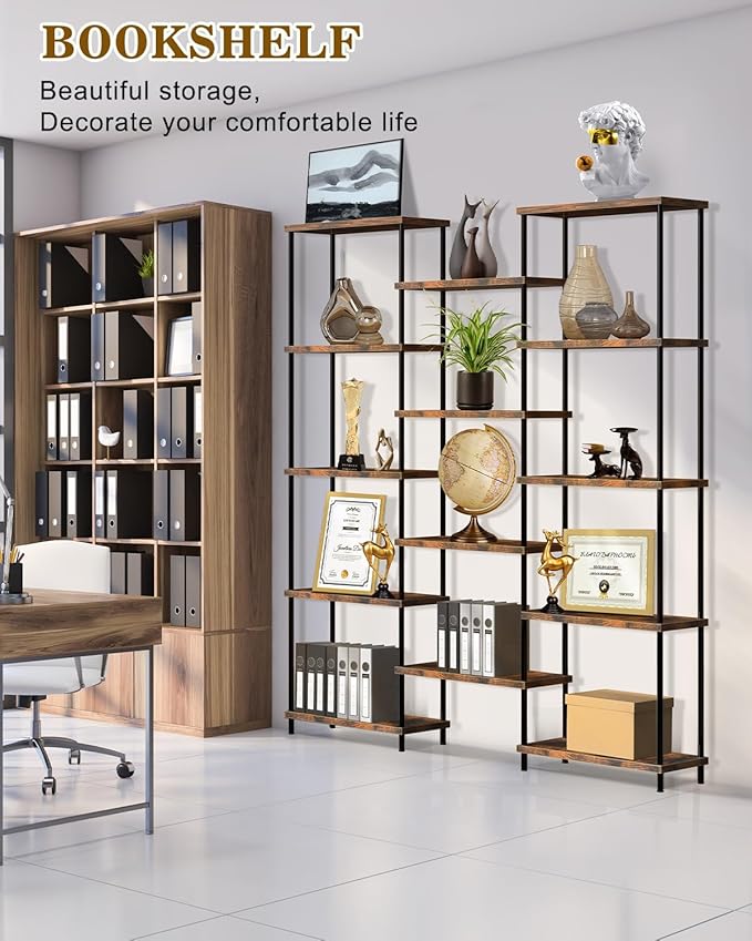 MOOACE 5 Tier Bookshelf, Industrial Style Bookcases with 14 Open Display Shelves, Open Large Storage Bookshelves Shelving with Anti-Falling Device for Bedroom,Living Room, Office Display Cabinet Brown