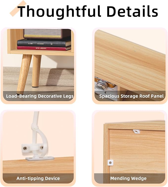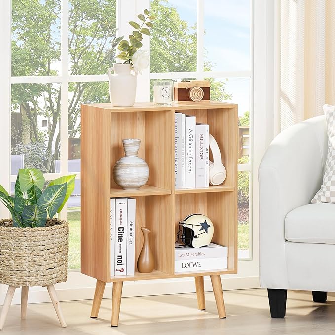 LEYAOYAO 4 Cube Bookshelf, 2-Tier Bookcase with Legs, Natural Kids Book Shelf Cute Storage Organizer, Free Standing Open Toy Shelves Modern Bookshelves,Wood Display Bookcases for Bedroom,Living Room