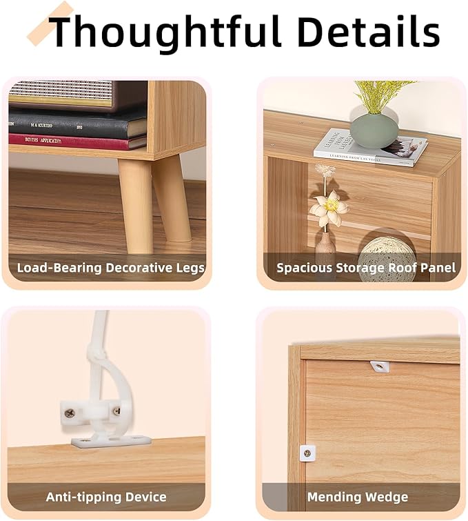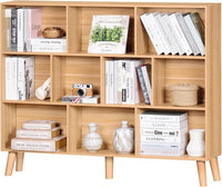 LEYAOYAO 10 Cube Bookshelf,3 Tier 55.12" Wide Boho Bookcase with Legs,Mid-Century Wood Bookshelves Storage,Natural Large Book Case,Freestanding Organizer Display Shelf for Bedroom,Living Room,Office