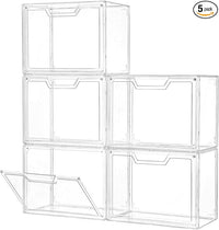 Stackable Storage Bins, Clear Acrylic Display Case, 5-Pack Acrylic Boxes with Lids, Clear Storage Containers Storage for Handbags, Collectibles & Figures