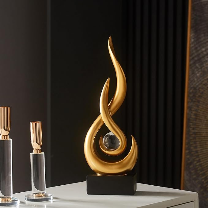 FJS Gold Decor Modern Flame Statue Home Decorations for Living Room, 13.7" H Resin Sculptures Home Décor Accents, Abstract Art Sculpture for Dining Room Office Coffee Table Centerpiece