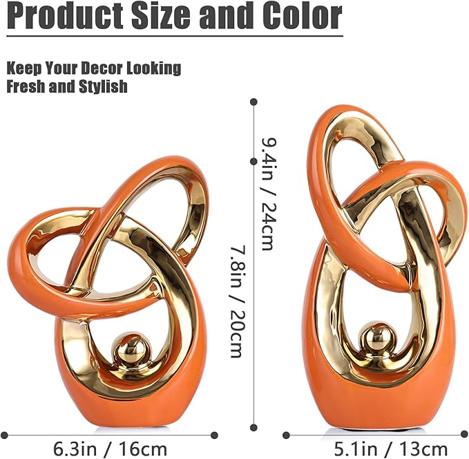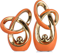 Orange Modern Abstract Art Home Decor Accent,Statues Coffee Table Decor for Living Room,Table Centerpieces for Dining Room,Ceramic Sculptures and Gold Knick Knacks for TV Stand Decor (Orange Gold)