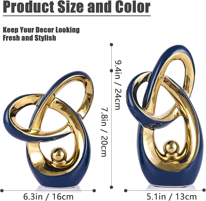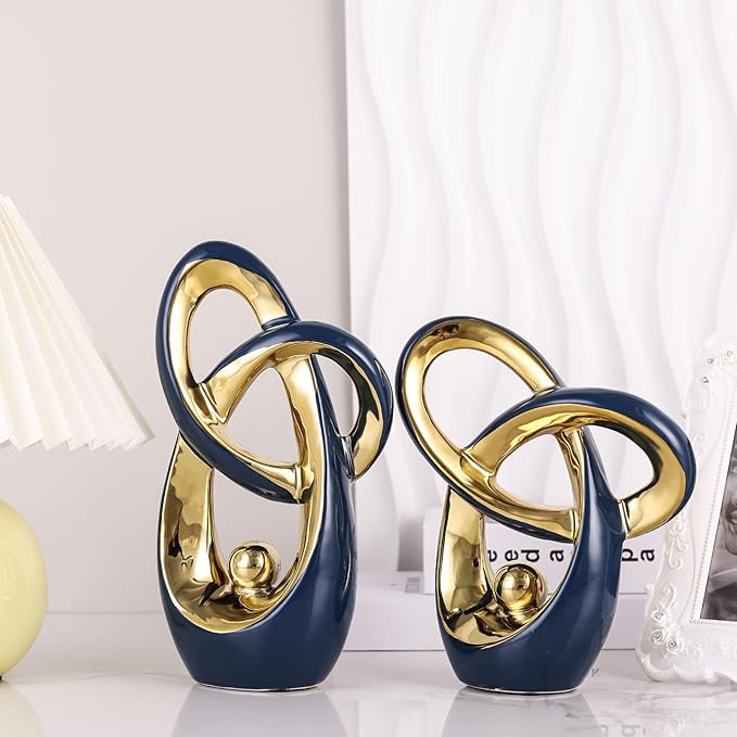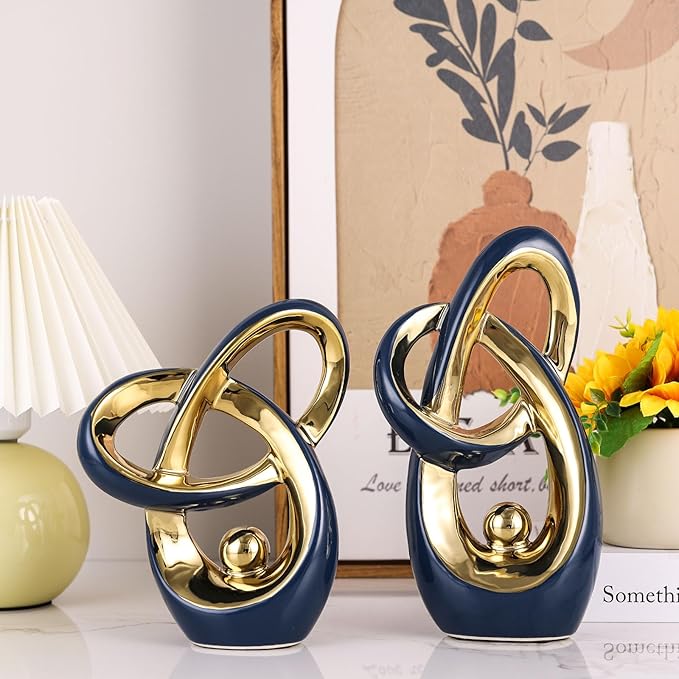Blue Gold Modern Abstract Art Home Accents, Coffee Table Decor for Living Room, Table Centerpieces for Dining Room, Ceramic Sculptures for TV Stand Decor