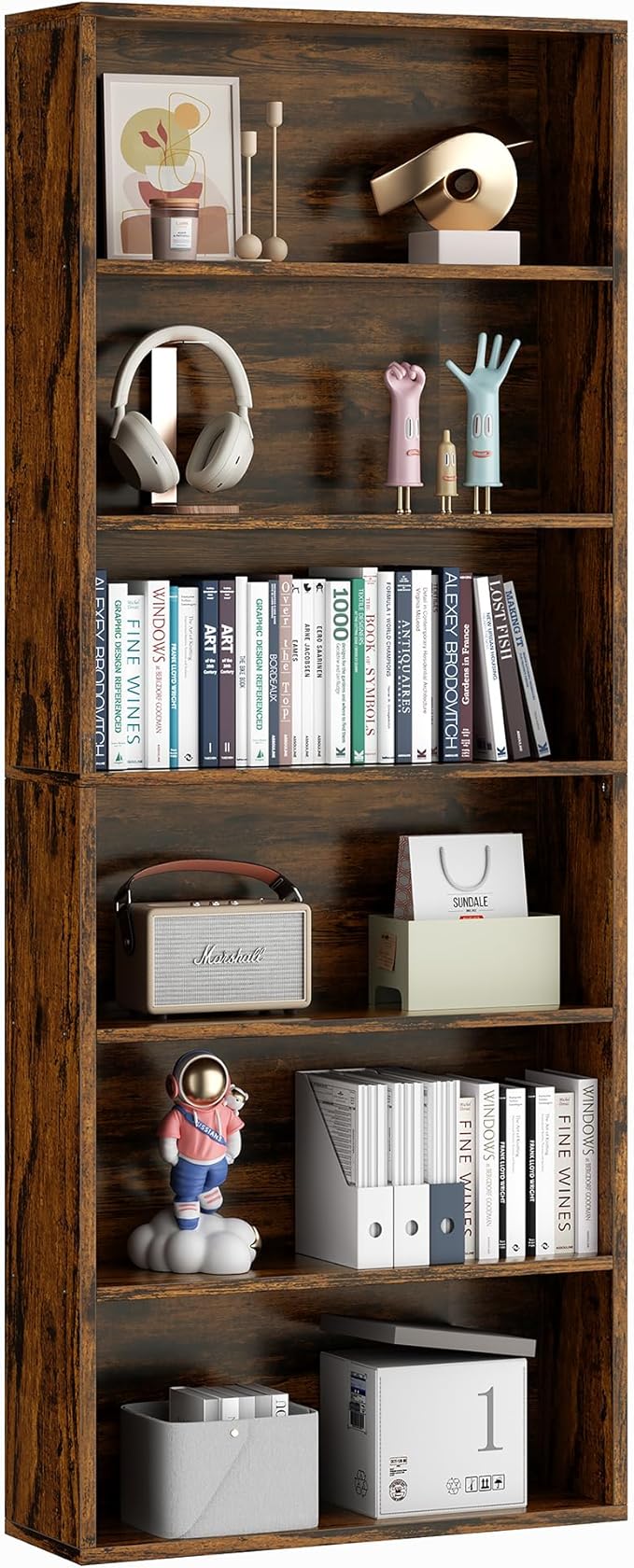 Vongrasig 6-Tier Open Bookcase and Bookshelf, Floor Standing Wood Display Storage Shelves 71 Inch Tall Bookcase Home Decor Furniture for Home Office, Living Room, Bed Room, Rustic Brown