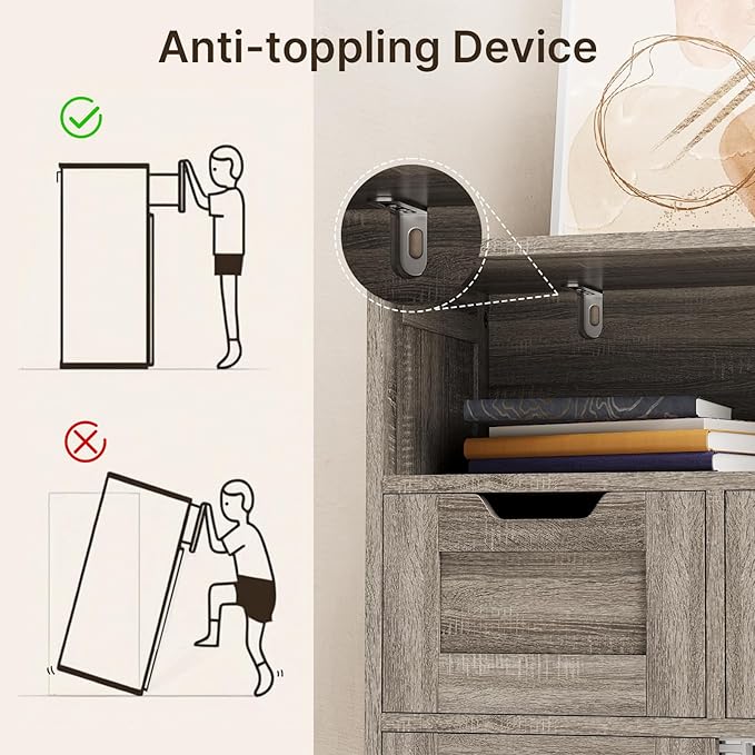 Gizoon Storage Cabinet, Bathroom Cabinet with 2 Drawers and Adjustable Shelves, Freestanding Storage Organizer with Doors for Bathroom, Living Room, Kitchen, Home Office, Hallway