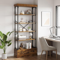 GarveeHome 81.3" Bookshelf with Storage Drawer, Tall Bookcase w/Metal Frame, 5 Tier Vintage Bookshelf Industry Display Storage Shelf for Office Living Room Library Bedroom