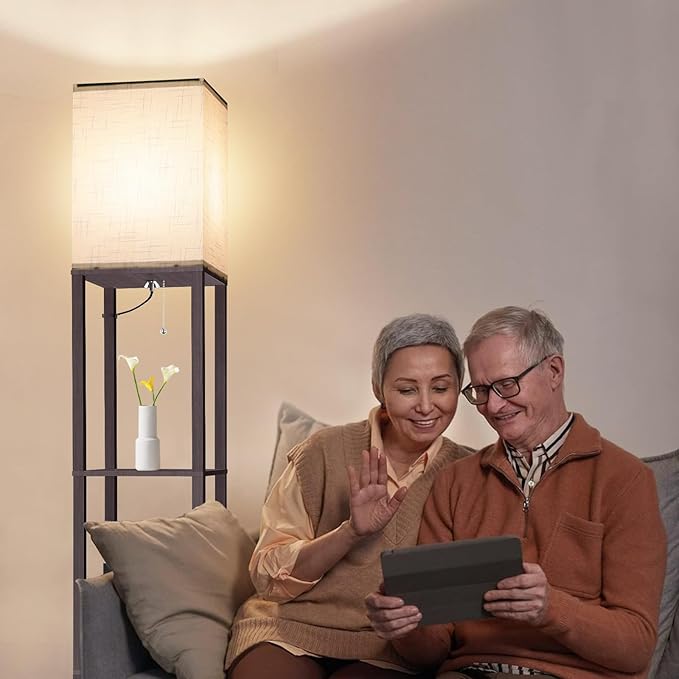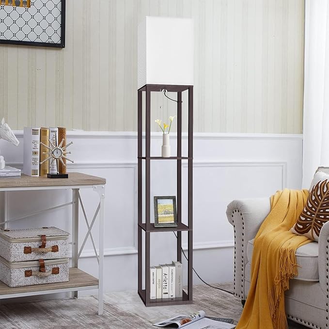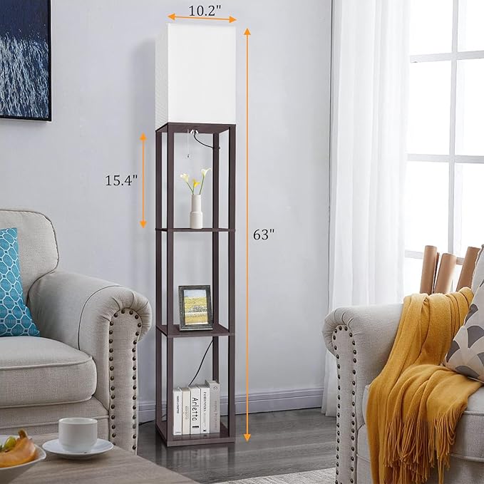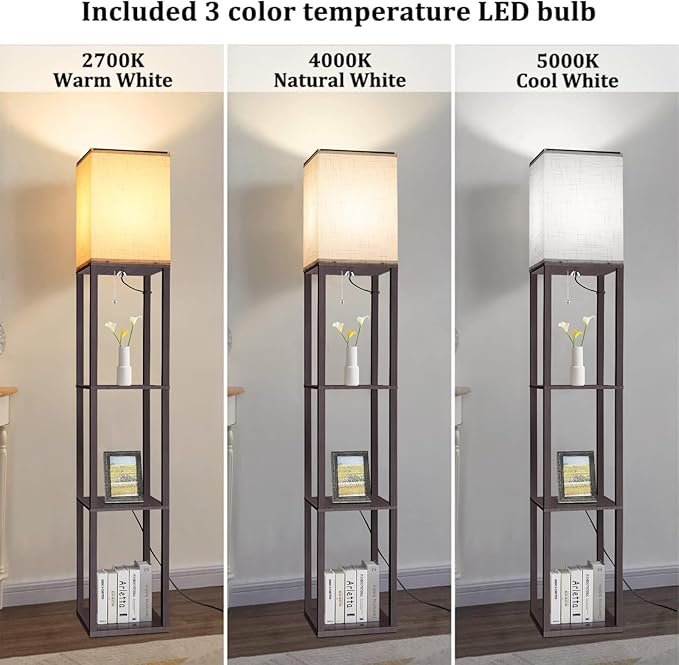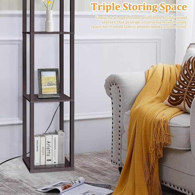 Dott Arts Floor Lamp with Shelves, Floor Lamps for Living Room Decor Display Shelf Lamps with 3 Color LED Bulb, Modern Floor Lamp for Bedroom Standing Lamp for Living Room Office,Home Decor(Walnut)
