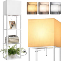 Dott Arts Floor Lamp with Shelves, Wide Floor Lamps for Living Room Display Shelf Lamps with 3 Color LED Bulb,Storage Wood Modern Floor Lamp for Bedroom Standing Lamp for Living Room Office(White)