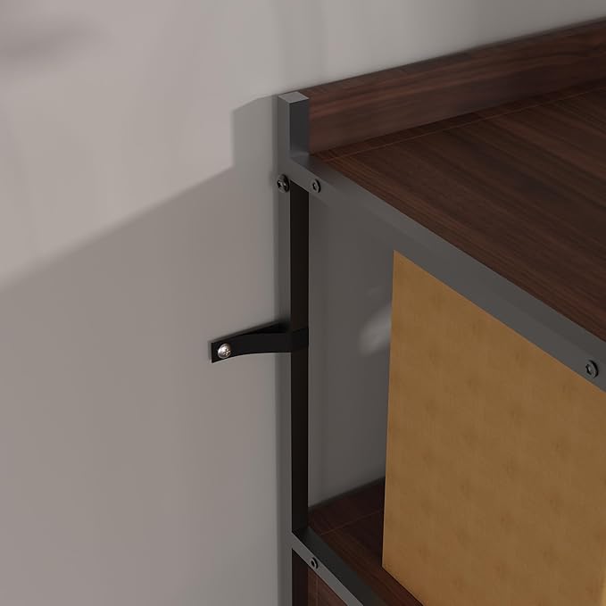 Bookshelf with Doors, 6-Tier Shelf with Storage Cabinet, 67" Tall Open Bookcase for Display, Industrial Retro Bookcase, Freestanding Storage Organizer Bookshelf for Living Room, Brown
