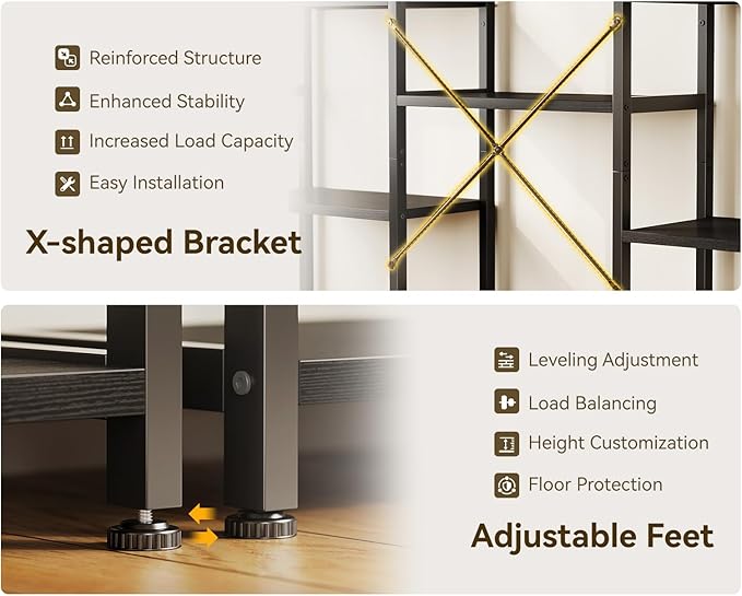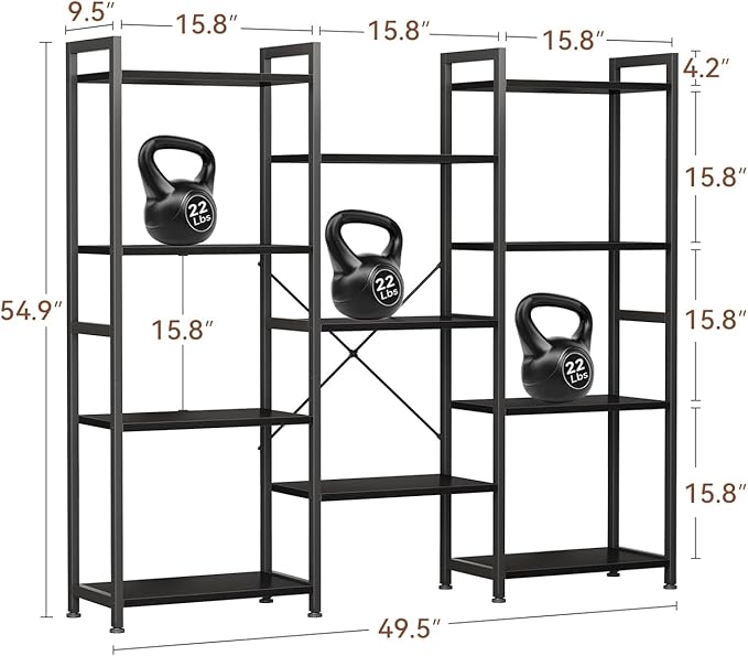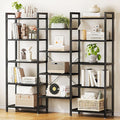 Casaottima Triple 4 Tier Bookshelf, Large Bookcase with 11 Open Display Shelves, Modern Industrial Book Shelves Book Case for Bedroom, Wide Standing Shelving Unit for Living Room Home Office, Black