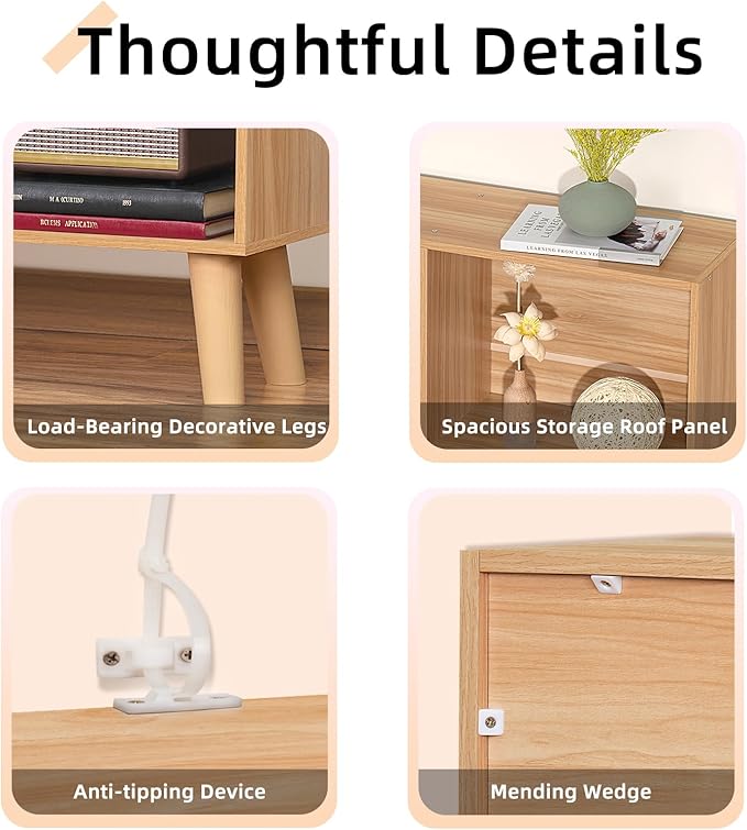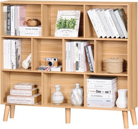 LEYAOYAO 10 Cube Bookshelf,3 Tier Modern Wide Bookcase with Legs,Mid-Century Wood Bookshelves Storage,Natural Large Book Case,Freestanding Organizer Display Shelf for Bedroom,Living Room,Office