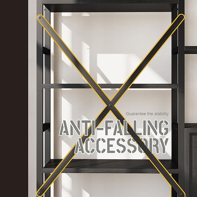 70 x70 Triple 5 Tier Book Shelf, Industrial Large Bookcase with Storage Cabinet, Tall Bookshelf with 14 Open Display Shelves Metal Frame Furniture for Living Room Bedroom Home Office Black