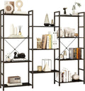 Panana Triple 4/5/6 Tier Bookshelf, Industrial Bookcase with 11/14/17 Open Display Shelves Wide Book Shelf Book Case with Metal Frame for Living Room Home Office (Brown, 5 Tier)