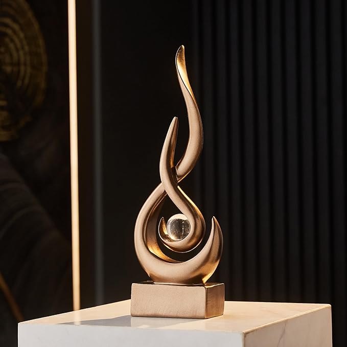 Modern Flame Statue Home Decorations for Living Room, 11.8" H Bronze Sculpture for Vintage Decor, Abstract Art Resin Sculptures for Dining Room TV Stand Coffee Table Centerpiece