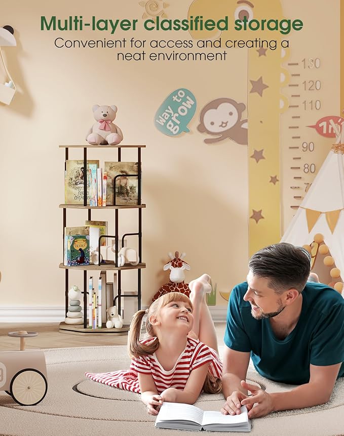 4 Tier Rotating Bookshelf, 360 Display Round Spinning Bookshelf Tower for Kids Room, Corner Shelf for Living Room, Office, Bedroom, Black