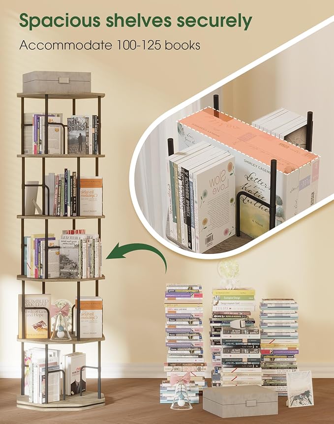 5 Tier Rotating Bookshelf, 360 Display Round Spinning Bookshelf Tower for Kids Room, Corner Shelf for Living Room, Office, Bedroom, Black