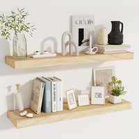 fuqing Floating Shelves for Wall - 36 Inch Natural Wood Shelves Set of 2-9.3 Inch Deep Wooden Wall Shelves with Upgraded Metal Brackets for Room