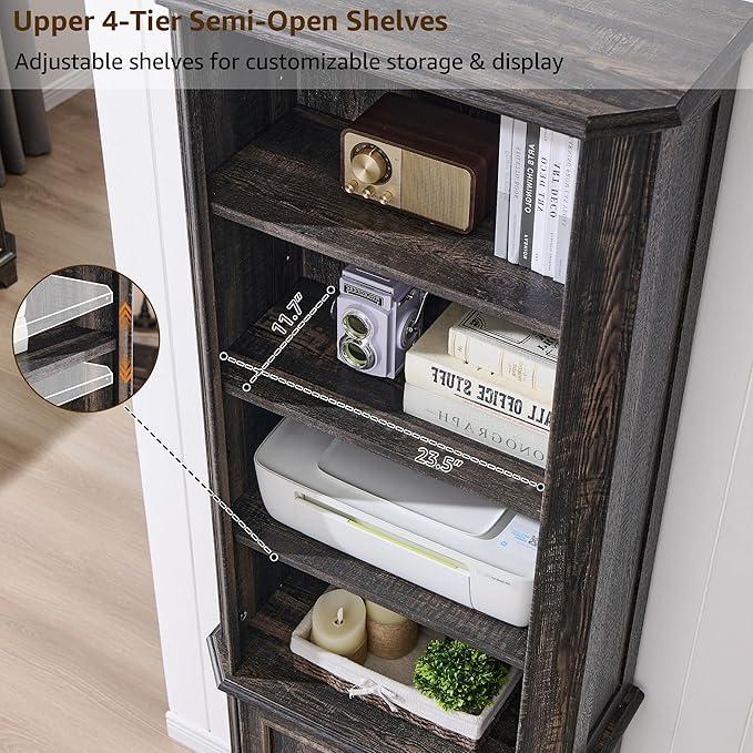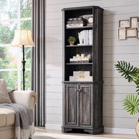 OKD 6-Tier Bookcase with Doors, 72" Tall Farmhouse Bookshelf with Storage & Adjustable Shelves, Wooden Floor Standing Display Book Shelf Organizer for Home Office, Dark Rustic Oak
