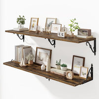 Fun Memories Large Floating Shelves for Wall 48 Inches Long, 12 Inch Deep Shelves with Metal Bracket, 48 Inch Floating Shelves Wall-Mounted, Wide Display & Storage Bookshelves, Rustic Brown, Set of 2
