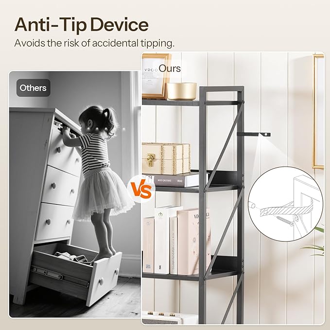 HOOBRO Bookshelf, 5-Tier Industrial Bookcase, Book Shelf Storage Organizer, Tall Bookshelf with Metal Frame for Living Room, Bedroom, Home Office, Kitchen, Black BB73SJ01