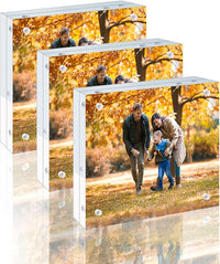 3 Pack 8x8 Acrylic Picture Frames - 20% Thicker Double Sided Magnetic Frame with UV Protection - Freestanding Clear Frameless Display for Tabletops - Modern Photo Frame Set for Home & Office Decor
