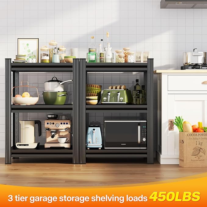 3 Tier Shelf Small Bookshelf 20 Inch Width Free Standing Shelf Adjustable Shelf Unit For Small Spaces Industrial Metal Book Shelves for Home, Office, Living Room,Kitchen,31.5''Hx20''Wx13.7''D,Black