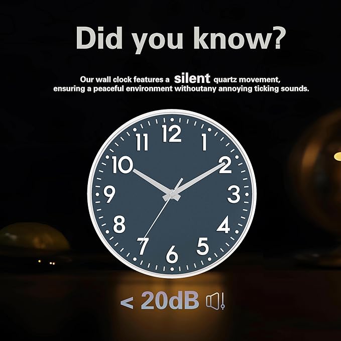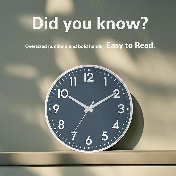 Mosewa Wall Clock 10 Inch, Battery Operated Silent Non-Ticking Modern Analog Clock Decorative for Kitchen, Bedroom, Office, Living Room (Azure Blue)