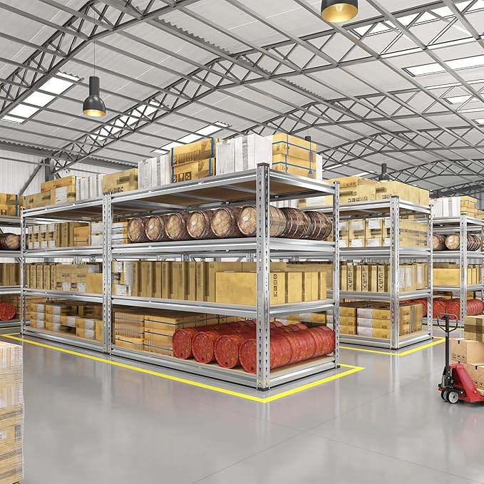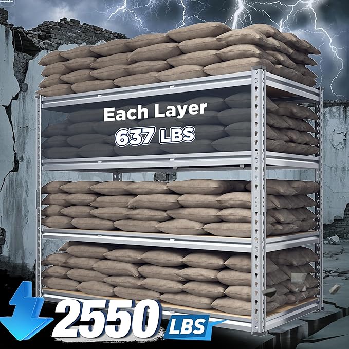 REIBII Garage Shelving, 4 Tier Storage Shelves Load 2550LBS, Adjustable Garage Shelving Heavy Duty, Metal Shelves Unit for Basement, Warehouse, 48" W x 60 "H x 24" D, Galvanized