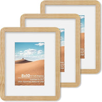 Dreamland 8x10 Round Corner Picture Frame, Solid Oak Photo Frame With Mat For 5x7, Plexiglass Framing Includes Hanging Hardware For Vertical Or Horizontal Wall Frame, Natural Oak, 3 Pack