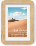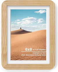 6x8 Round Corner Picture Frame, Solid Oak Wood Frame With Mat For 5x7 And Plexiglass, Includes Hanging Hardware For Wall Or Tabletop Photo Frame, Natural Oak, 1 Pack