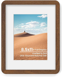 8.5x11 Round Corner Picture Frame, Solid Oak Wood Frame Matted For 6x8 With Plexiglass, Hanging Hardware Included For Tabletop Or Wall Display Frame, Walnut, 1 Pack