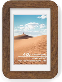 4x6 Round Corner Picture Frame, Solid Oak Wood Photo Frame With Mat For 3.5x5, Shatterproof Plexiglass Includes Hanging Hardware For Wall Hanging Or Tabletop Display Frame, Walnut, 1 Pack