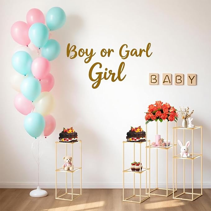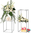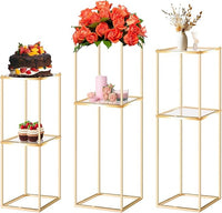 2-Tier Metal Flower Stand Set with Acrylic Shelves, Geometric Display Rack for Wedding Centerpieces, Party Decor, Tall Floor Vase Stand (Gold, Set of 3-36.8"/32.9"/25")