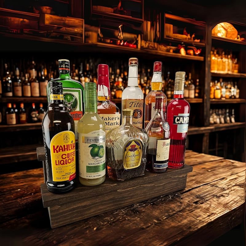 Handmade Liquor Bottle Display Shelf, Bar Display, Kitchen Counter Shelf, Crafted in USA with Premium Quality Wood, Rustic Espresso Finish (2 Tier, 20 inches)